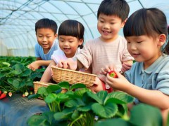 在草莓大棚中,孩子們親手采摘那些晶瑩剔透的草莓,體驗收獲的喜悅。他們在綠葉中尋找最大的草莓,互相分享采摘的樂趣,整個過程中充滿了歡聲笑語。
