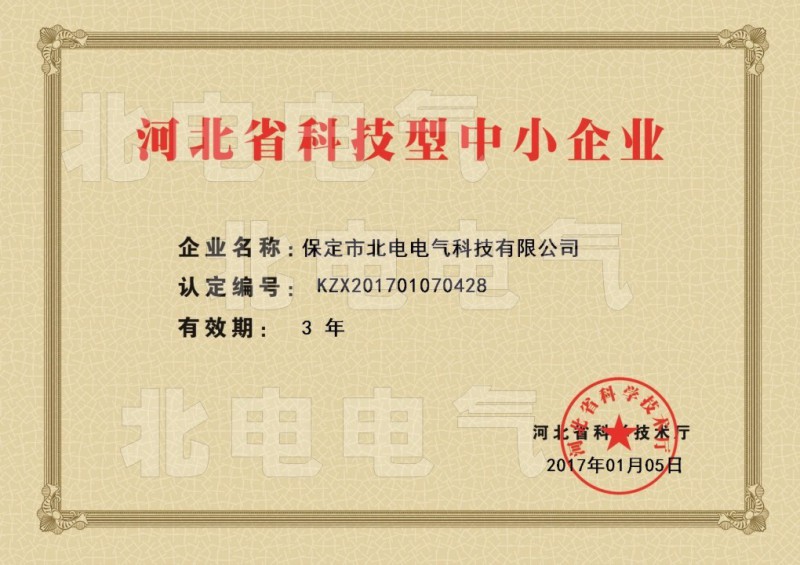 河北省科技型中小企業認證證書