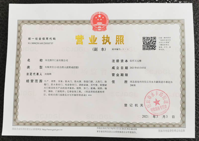 | 發(fā)證機(jī)構(gòu): | 任丘市工商行政管理局 | 發(fā)證時間 : | 2021-03-03 |
