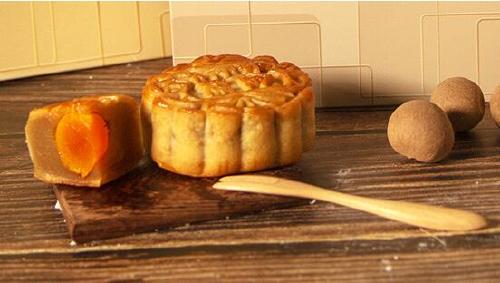 2.將包好的月餅捏成圓柱形,再用模具壓好。