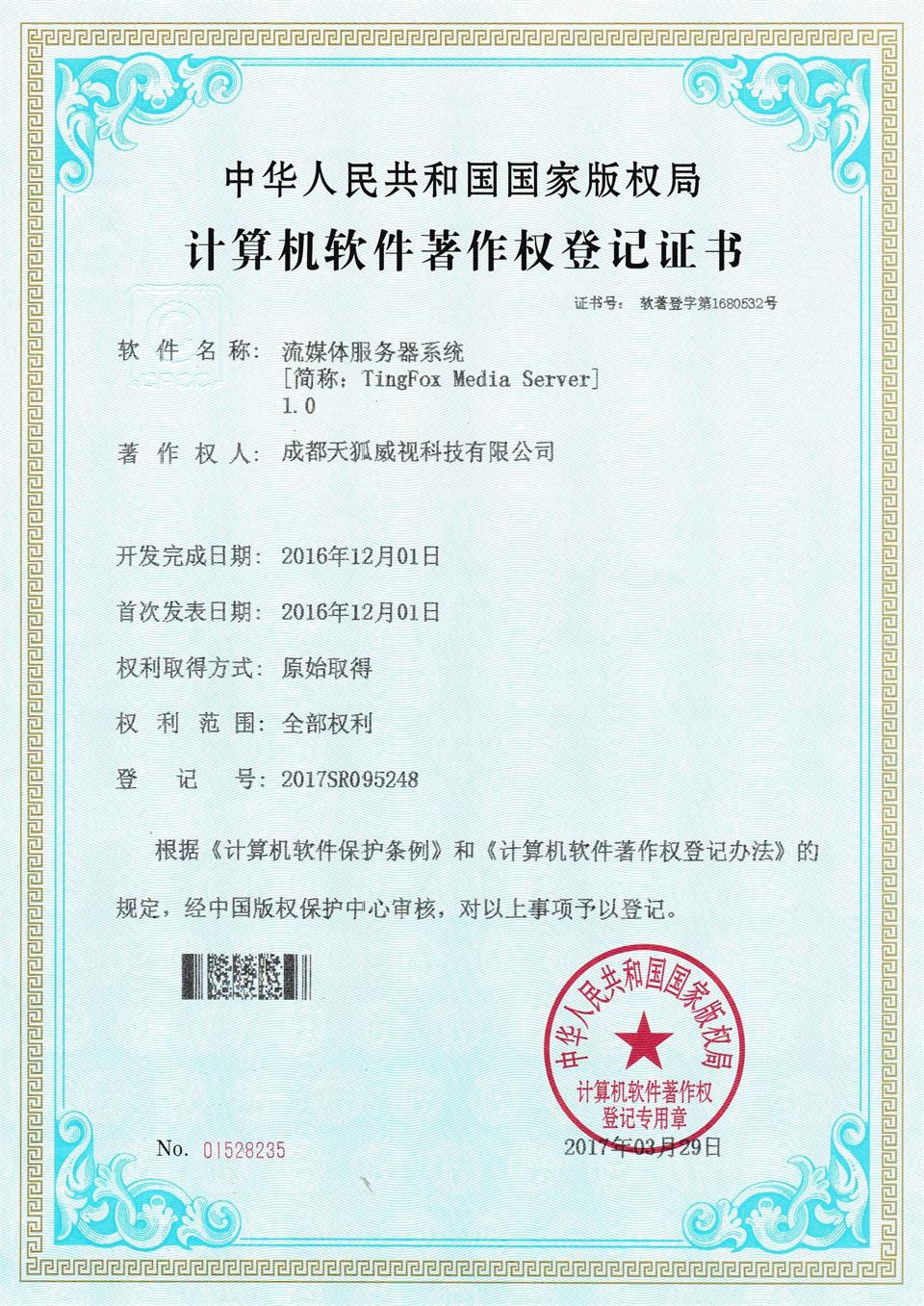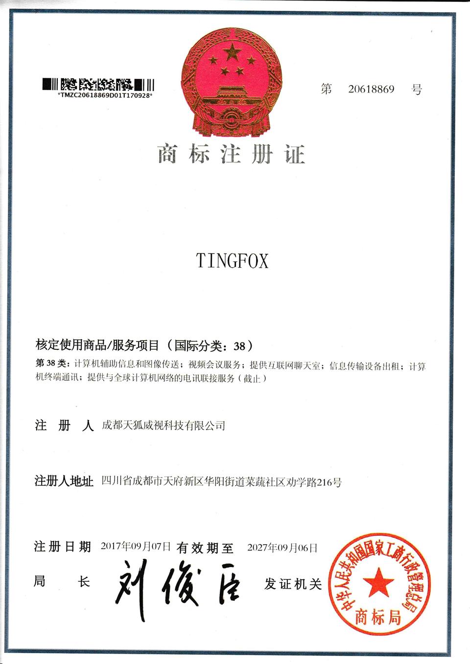 TingFox隸屬于成都天狐威視科技有限公司。 成都天狐威視科技有限公司是領先的流媒體與多媒體通訊開發商,致力于向社會提供成熟、先進的多媒體通訊產品和專業的智能錄播解決方案。