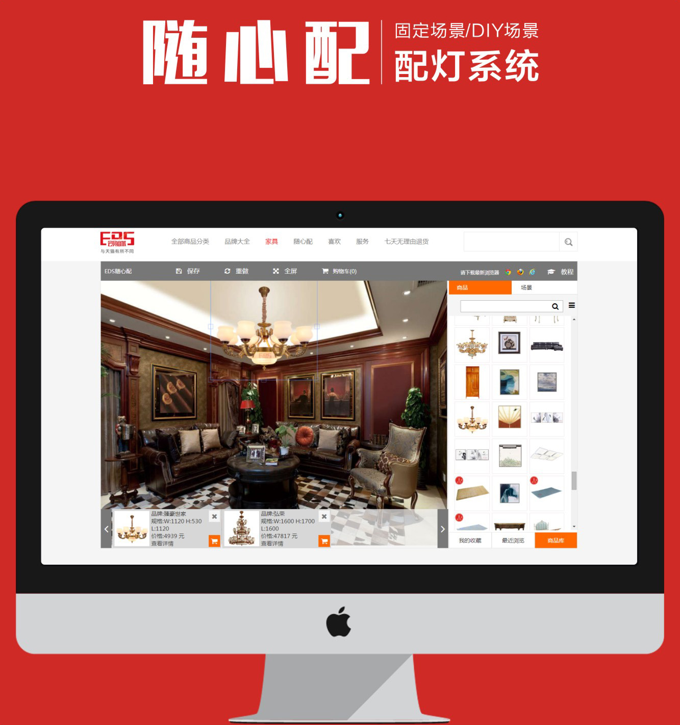 EDS會員商城(www.edsmall.cn)是一個專業線上選購、搭配、線下安裝及售后服務的泛家居電子商務平臺。其隨心配功能(固定場景或DIY場景配燈):擁有海量的場景、產品圖片,美式、中式、歐式、現代、后現代等等,應有盡有。百變風格隨心換,個性自主隨心定!客戶家的裝修,隨拍隨配,一鍵出效果一鍵分享,人人都是配燈大師。EDS會員商城對于加盟的經銷商遠遠不止這些好處哦!