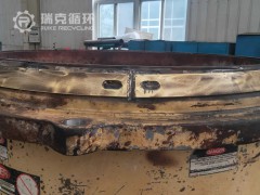 下面為欒川某礦山企業送修的美卓HP300下架體部,經技術部門檢測主要維修項為,架體連接處座襯更換,座襯為連接架體的墊板其材料為銅件。長期使用會導致變形脫落,對主機風整體穩定性產生影響。其次定位銷產期使用后會導致拉偏,重新更換導向定位銷,補焊安裝內孔重新加工內孔進行冷凍安裝,以保證其堅固程度。