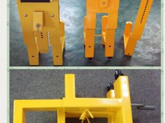 大三角車輪鎖,三角固定鎖住輪胎,防止任何方式的拆卸輪胎換胎之后將車開走的不法分子,是城管路政執法大愛的車輪鎖款式。經典黃色鋼板車輪鎖,在工地中使用起到了減少看護人員費用,一把鎖不經過惡意破壞的情況下可以使用多年。加厚鋼板,一把重約56斤,更加防撬防砸,萬向腳輪設計移動更省力,使用更加輕松。三爪重型車輪鎖鎖車器,最新專利產品。主要依據重型拖掛車、泥頭車、大型貨柜車、大客車、渣土車等大馬力車輛專門打造的專用車輪鎖。安全性能高、整體性能牢固、承載力度大、鎖緊力強,鎖體非常堅固,可經受任何工具的砸撬而不會對鎖體造成損壞。本鎖使用粗壯三條矩形無縫鋼管制造,釘罩盤使用雙層5MM優質鋼板沖壓制成,鎖體重達28KG,堅固耐用。