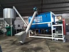 保證產(chǎn)品質(zhì)量穩(wěn)定。干粉砂漿設(shè)備工藝流程簡(jiǎn)潔,科學(xué)。能夠按照客戶產(chǎn)品配方需要進(jìn)行不同規(guī)模投資和量身定制。臥式螺帶干粉混合機(jī)的攪拌器結(jié)構(gòu)設(shè)計(jì)成內(nèi)外三層螺旋葉片,混合機(jī)工作時(shí),內(nèi)、外螺旋帶動(dòng)筒體內(nèi)物料翻動(dòng),內(nèi)螺旋帶動(dòng)靠近軸心處物料做軸心旋轉(zhuǎn),轉(zhuǎn)向由內(nèi)至兩 側(cè)推動(dòng),物料被推向筒壁;外螺旋帶動(dòng)靠近筒壁物料做軸心旋轉(zhuǎn),軸向由兩側(cè)至內(nèi)推動(dòng),