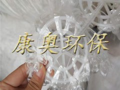 組合填料由纖維束、塑料環片、套管、中心繩組成,其結構是將塑料環片壓扣改成雙圈大塑料環,將醛化纖維或滌綸絲壓在環的環圈上,使纖維束均勻分布;內圈是雪花狀塑料枝條,既能掛膜,又能有效切割氣泡,提高氧的轉移速率和利用率。使水氣生物膜得到充分交換,使水中的有機物得到高效處理