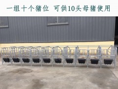 復合定位欄是由大架,前門,后門,復合板,鑄鐵腿,食槽,拉桿及配套螺絲組成。正常的是10個豬位一組,也可以根據豬舍的尺寸,五個一排,幾十個一排都可以。我們在發貨過程中,是發的散件,客戶直接安裝即可。