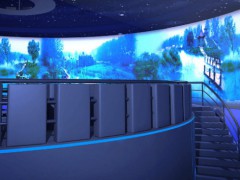 環(huán)幕(立體)投影系統(tǒng)是一種視聽高度沉浸的虛擬仿真顯示環(huán)境,采用多臺(tái)投影(通道)組成的環(huán)形投影屏幕,環(huán)幕半徑通常有100~360弧度不等。由于其屏幕半徑寬大,觀眾的視覺完全被包圍,再配合環(huán)繞立體聲系統(tǒng),是參與者充分體驗(yàn)一種高度身臨其境的三維立體視聽感受,獲得一個(gè)具有高度沉浸感的虛擬仿真可視環(huán)境,是傳統(tǒng)平幕顯示設(shè)備不能比擬的,環(huán)幕投影重要的應(yīng)用就是立體投影系統(tǒng)。