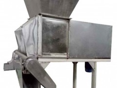 狀,并使瓜瓤暴露。粗去瓤裝置和精去瓤裝置均包括可旋轉的攪拌葉片和設有漏料孔的殼體,攪拌葉片轉動帶動塊狀的冬瓜 和瓜瓤轉動,轉動過程中瓜瓤從漏料孔當中漏出,使瓜瓤和冬瓜分離。利用本實用新型全自動冬瓜去瓤機,能夠取代傳統的