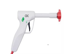 一次性使用肛腸套扎器由痔瘡吸附管、手柄組件(主要由固定手柄、擊發手柄、限位塊、彈組成)、復位按鈕、吸氣組件(主要由擊發桿、吸引接頭、吸氣旋鈕、吸引閥吸引管組成)、套扎圈組件(由擊發圈和套扎圈組成)、保護蓋組成。附件由擴肛器、肛塞組成。