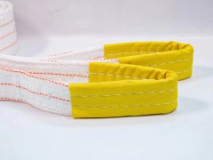 大噸位白色扁平吊帶因?yàn)槔w維制成吊裝的流程未經(jīng)任何染料加色,所以強(qiáng)度無損傷,更環(huán)