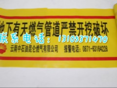 警示帶有兩種:一種為普通警示帶;另一種為夾金屬警示帶。由于地下管線越來越多地采用塑管,無法探測,夾金屬警示帶可以解決這一難題。該產(chǎn)品采用高強(qiáng)度、耐老化的高分子材料,色澤鮮艷、醒目,長期鋪設(shè)在地下不褪色,耐腐蝕性能好,符合長期地下不變要求。