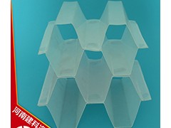 蜂窩斜管采用改性乙丙共聚塑料為材料,紅外線恒溫機械熱拉成六角管狀,然后采用專利技術,高頻焊接成整體產品,到客戶現場安裝。