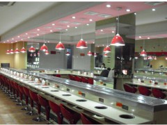 旋轉火鍋設備設備 回轉火鍋設備是我公司自創(chuàng)開發(fā)的一種新型菜料自動輸送設備,輸送長度可根據客戶的場地造型尺寸定做,輸送鏈板采用304不銹鋼制造,具有美觀、清潔、衛(wèi)生,輸送方向,速度任意可調,是各種自助火鍋,自助早餐的新型時尚的設備。傳動部分采用臺灣產(城邦牌)2HP-1500W變頻減速電機,速比1:100,變頻器采用220V,2HP-1500W.SE系列,線速2-8米/分鐘 可調。壽司線,回轉壽司線,回轉火鍋線專為大中小型餐飲連鎖企業(yè)量身定做,適應了飲食界推陳出新,適應了現代人對飲食新奇的追求,必會掀起都市飲食新潮。