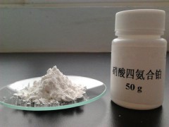 硝酸四氨合鉑,別名硝酸四氨鉑,四氨合硝酸鉑,白色晶體。鉑的四氨類家族中的一員,極易溶于水,不溶于乙醇、丙酮,在酸性條件下不穩定,已經絡合的氨會脫離出來,生成氯化銨,與四氯合鉑基團反應會生成馬格努斯綠色鹽。工業上有時用作鉑催化劑的前軀體。