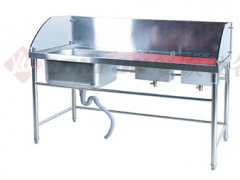 產(chǎn)品說(shuō)明:面板采用1.2mm磨砂貼塑不銹鋼板;配不銹鋼下水器,帶渣漏;1、支撐腳管采用400mm*40mm*2.0mm不銹鋼圓管,配可調(diào)腳 2、池底帶坡、排水 暢通