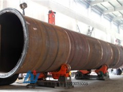 1、筒體;2、前輥圈;3、后輥圈;4、齒輪;5、擋輥;6、拖輥;7、小齒輪;8、出料部分;9;揚板;10、減速機;11、電機;12、熱風道,13、進料溜槽;14、爐體等部分組成,另外可根據用戶需求設計煤氣發生爐、燃燒室或配套提升機、皮帶輸送機、定量給料機、旋風除塵器、引風機等。