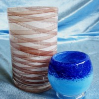【施工方式】在吹制或壓制玻璃制品時,從熔爐里把液態的玻璃水挑出來,沾上玻璃云彩粉,通過人工口吹或機器旋轉離心作用制成需要的形狀和效果。