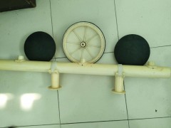 曝氣裝置由橡膠膜微孔曝氣器、布?xì)夤艿馈⒄{(diào)節(jié)器、連接件、清除裝置等組成。布?xì)夤艿拉h(huán)形布置,橡膠膜微孔曝氣器按供氣量和池形布置密度、曝氣器和布?xì)夤艿赖倪B接采用G3/4螺紋連接,底座(固定于布?xì)夤艿郎?橡膠膜微孔曝氣器為外螺紋,安裝時先把調(diào)節(jié)器按所需尺寸膨脹累栓固定在池底,然把布?xì)夤艿拦潭ㄔ谡{(diào)節(jié)器上.為防止其它作業(yè)如電焊火花和土建時,混凝土等重物損壞曝氣裝置,必須等土建后在放水前把曝氣器上。為防止管道和連接部分漏氣,應(yīng)放水超過曝氣器1 0cm左右水深試漏,通氣管道連接部分漏氣應(yīng)及時排除,然后正式投運。